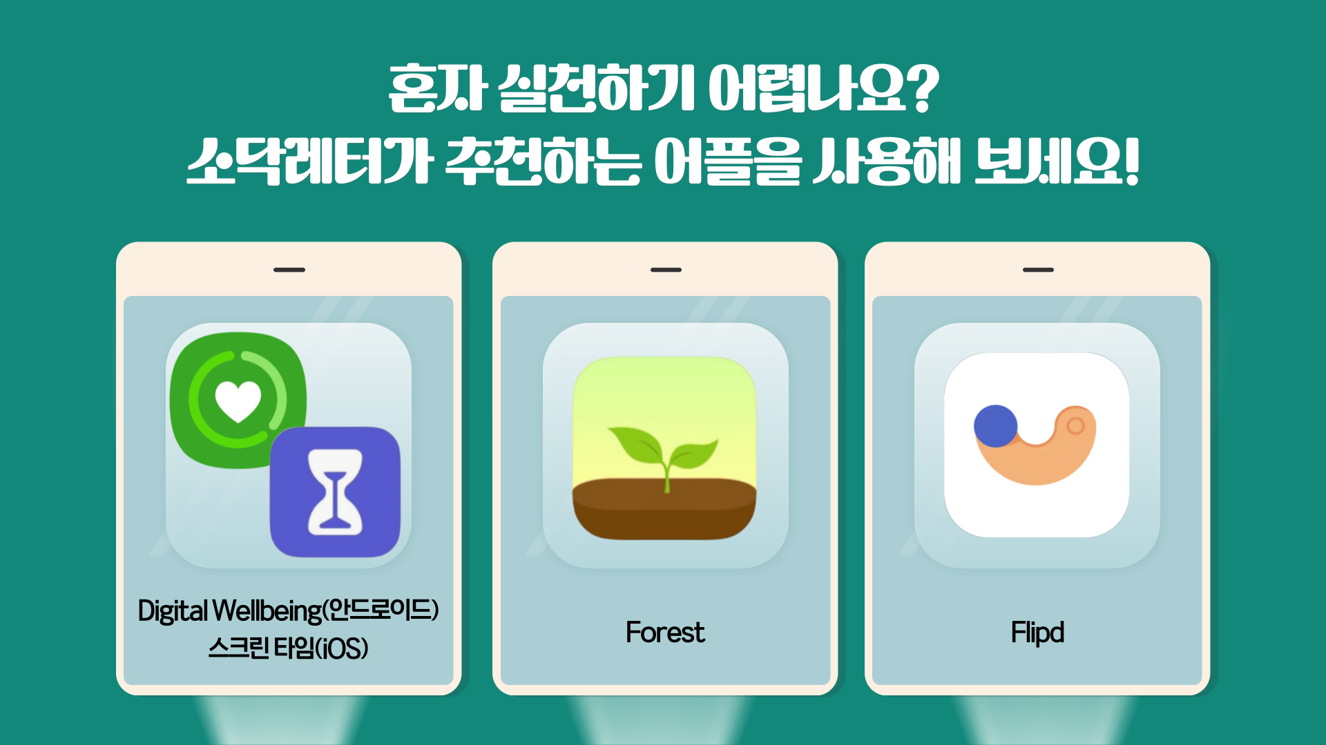 [Digital Wellbeing/스크린 타임], [Forest], [Flipd] 어플을 사용해 보세요!